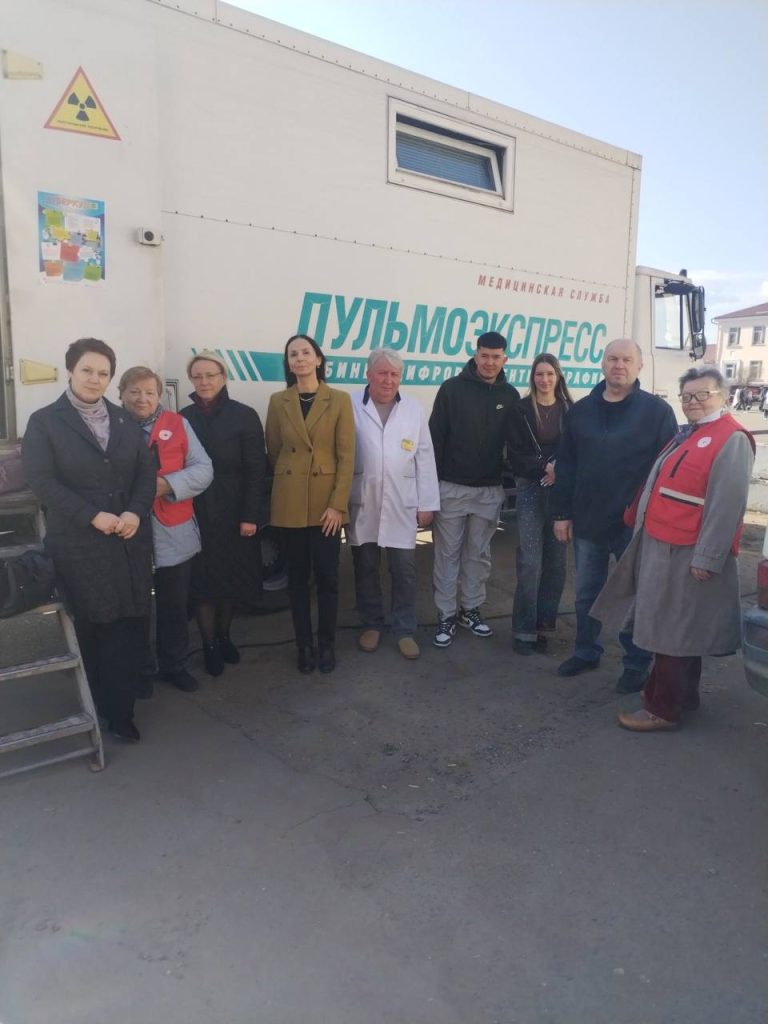 24.03.2026г. совместно с представителями Белорусского Красного Креста у центрального рынка г. Бобруйска для всех желающих пройти рентгенофлюорографическое обследования, разместился рентгенаппарат «Пульмоэкспресс» с одномоментной выдачей результатов исследования врачом -рентгенологом (заведующим) А.А. Алисейко, проводилась информационно-просветительная работа с населением.